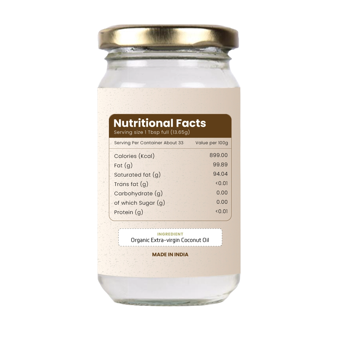 Our Organic Virgin Coconut Oil is a versatile essential with 15+ benefits: It's an all-rounder, ideal for baby care, low-flame cooking, baking (as a butter substitute), salad dressing, and use as a healthy fat in smoothies. Acts as a toxin-free moisturizer, toxin-free baby care, and doubles as a pre-shampoo hair conditioner, reducing frizz and enhancing texture when used twice a week before shampooing. (Leave in for two hours for best results) For Baby-care, it's a great massage oil that promotes softer, brighter skin and improved muscle function. Leave it in for better absorption. Provides topical relief for minor burns, insect/mosquito bites, and soothes post-sun exposure and chafing. Consuming 1 tablespoon on an empty stomach supports better gut health, metabolism, digestion, and helps with weight loss. Improves skin hydration, leaving it soft and supple, especially effective when used nightly before bed or immediately after a hot shower on slightly damp skin.